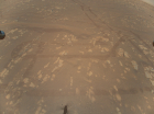 Ez az első színes kép a marsi felszínről, amelyet egy légi jármű készített a magasban. A képet az Ingenuity Mars Helikopter második sikeres repülési teszt során, 2021. április 22-én rögzítette színes kamerájával. A kép elkészítésekor az Ingenuity 17 láb (5,2 méter) magasságban volt a felszín felett, és dőlt (felfelé mozgatva a kamera látóterét). így a helikopter megkezdhette a 7 láb (2 méter) átfutását nyugat felé – távol a rovertől. A kép, a Perseverance Mars-járó nyomait és a Mars felszínének egy részét mutatja.